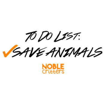 "100% of ALL Noble Critters profits is donated to saving animals who need your help. Being a part of this great cause is for those who walk quietly but carry a big stick; Love like no one else; Expect nothing in return; Care when no one else does; And, are willing to be the voice for animals who don’t have one."